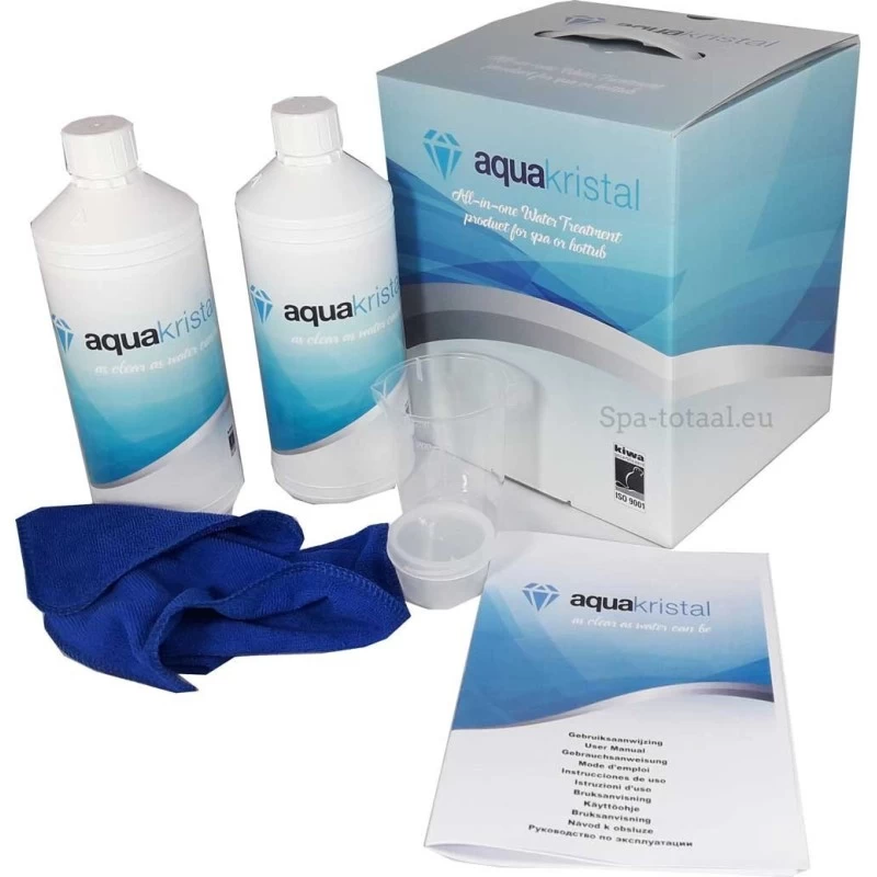 Aqua Kristal is een milieuvriendelijk all-in-one product voor wateronderhoud van uw spa, hot tub of zwemspa. Het product kent een unieke werkwijze en zorgt ervoor dat u slechts een minimale hoeveelheid desinfectiemiddel, zoals een chloorpilletje in een dispenser, aan uw badwater hoeft toe te voegen. Bovendien is Aqua Kristal biologisch afbreekbaar en dat maakt Aqua Kristal dus dubbel vriendelijk voor het milieu.