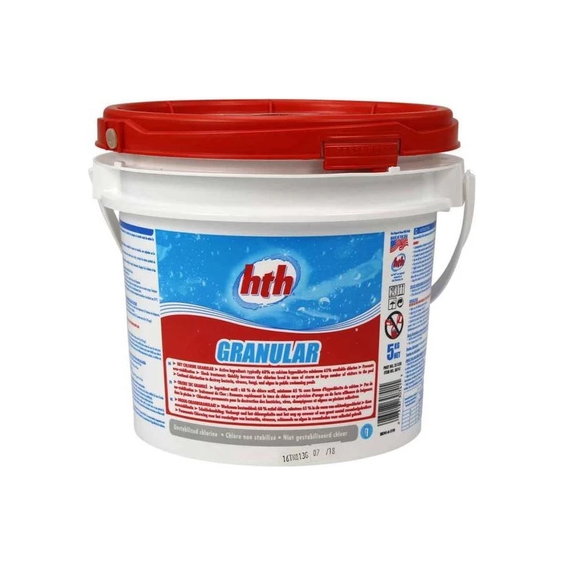 HTH chloorgranulaat is uitsluitend voor het gebruik van desinfectiemiddel in zwemwater. Bevatย niet-gestabiliseerdย chloor (cyaanzuur). Vernietigt bacteriรซn, virussen en schimmels in het water. Dient als shockbehandeling te worden toegepast als het zwembadwater ernstig uit balans is.