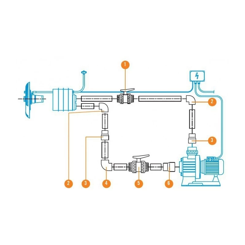 Niet inbegrepen bij de levering is de flenskit (11503). Maximaal zoutgehalte in water 0,6% (6 gram / liter).