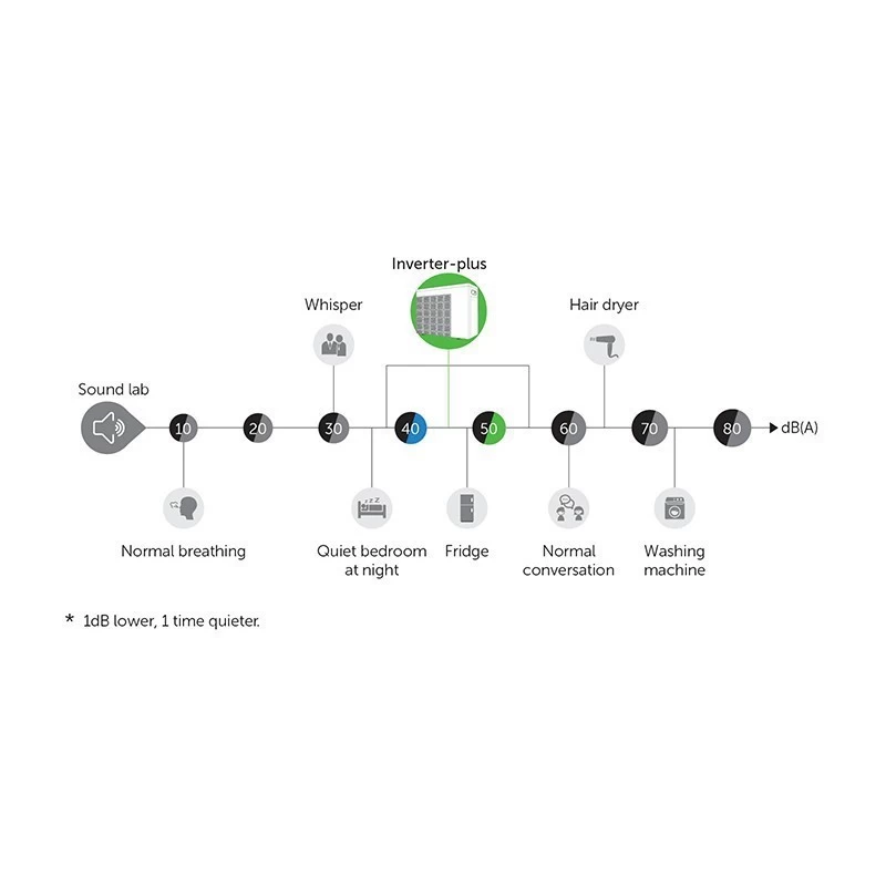 | Geluidsdruk op 1m dB (A) | 38,6 ~ 49,9 dB (A) |