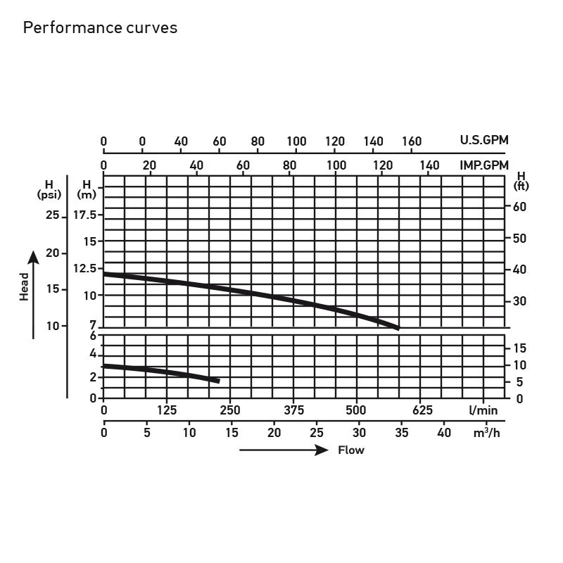 Toerental: / min Debiet: 30 m3 / h, 500 l / min