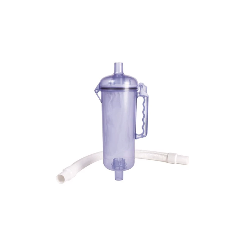 1 ½’’ Transparante bladvanger met afvalzak en 1,2m Ø 38mm slang. Deze kunt u tussen uw skimmer en zuiger aansluiten zodat het de grote bladeren en andere vervuiling kan opvangen.