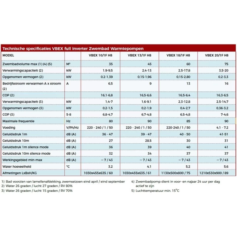 De VBEX full inverter warmtepomp zal trachten met een zo laag mogelijk toerental van de compressor (en dus een zo laag mogelijk elektrisch verbruik) het zwembad op temperatuur te houden.