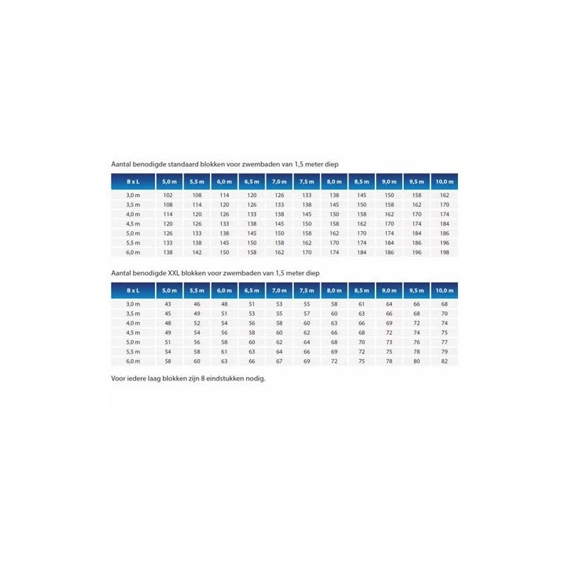 Zwembadbouwblokken geleverd voor een zwembad van 4 x 8 x 1,5 meter.