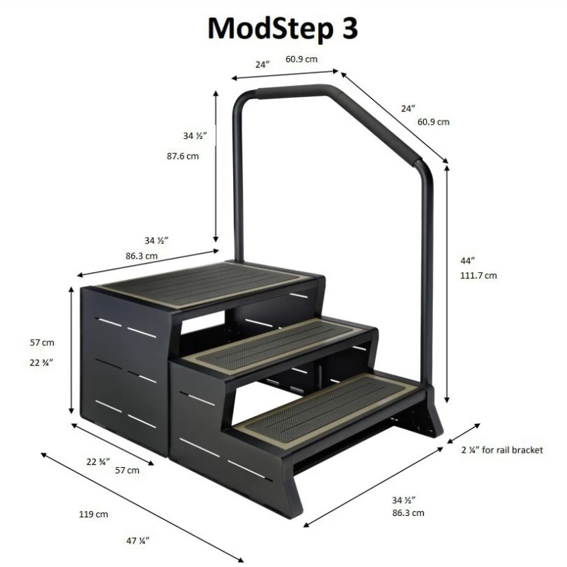 De Leisure concepten ModStep is een geweldige aanvulling op elke spa of zwemspa. Gemaakt om het leven gemakkelijker te maken voor het betreden van uw spa of zwemspa, heeft de ModStep een leuning om u stabiel te houden en een loopvlak van 30,5 cm diep x 89 cm breed om u veilig en veilig te houden.